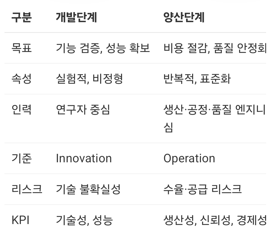 KPI를 “개발 완료”가 아닌 “양산 성공률” 중심으로 통합 관리.