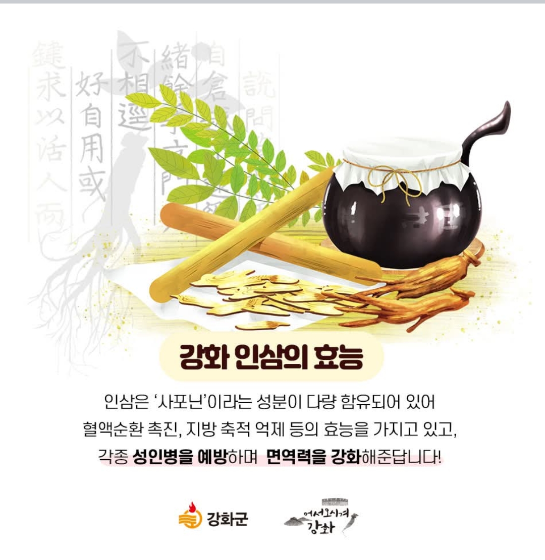 이번 설에는 여러분도 흔한 기성품 대신, 지역의 숨결과 여러분의 정성이 담긴 특별한 선물을 준비해 보시는 건 어떨까요? 강화도의 맑은 기운이 담긴 인삼 한 뿌리가 그 어떤 말보다 깊은 위로와 응원이 될 것입니다.
