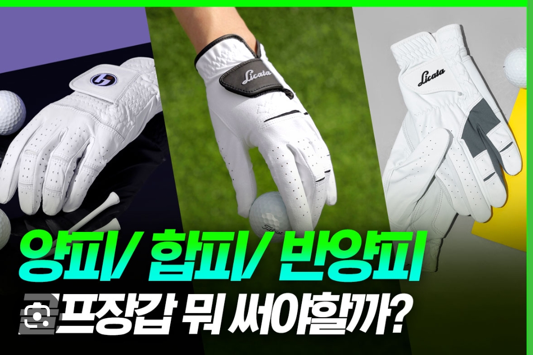 골프장갑은 크게 양피와 합피로 나뉜다. 양피 장갑은 천연가죽으로 만들어져 부드럽고 손에 붙는 감각이 뛰어나다. 손가락 움직임이 자연스럽고 미세한 손맛을 느끼기에 유리해 상급자가 선호한다. 다만 땀과 습기에 약하고 내구성이 낮아 금방 닳는다는 단점이 있다. 반면 합피 장갑은 인조가죽으로 만들어져 내구성이 강하고 비·땀·습기에 강하다. 마찰력도 높아 그립이 흔들리는 초보에게 훨씬 안정적이다. 단, 손에 감기는 촉감은 양피에 비해 다소 떨어질 수 있다. 요약하면 양피는 감각·부드러움, 합피는 실전 내구성과 안정성이 강점이다.